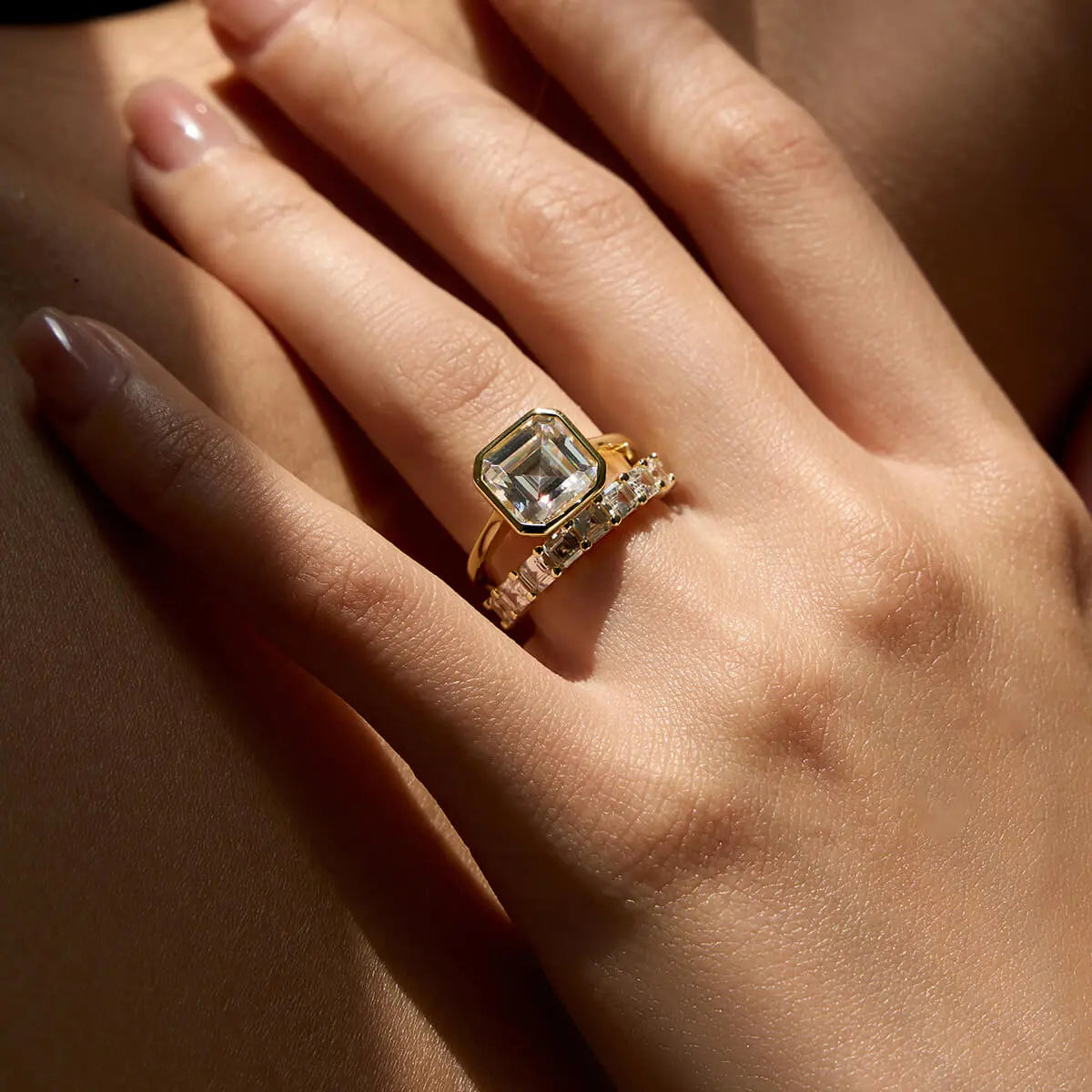 Isabelle hat sich wegen des Designs für den Viviana Ring entschieden – die starke Form, das besondere Funkeln. Irgendwas daran fühlte sich einfach richtig an. Still und schön.